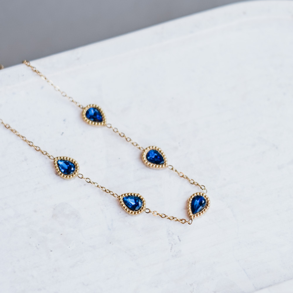 Χρυσή αλυσίδα για το λαιμό με μπλέ πέτρες από ανοξείδωτο ατσάλι που δεν μαυρίζει και είναι ανθεκτικό στο νερό!