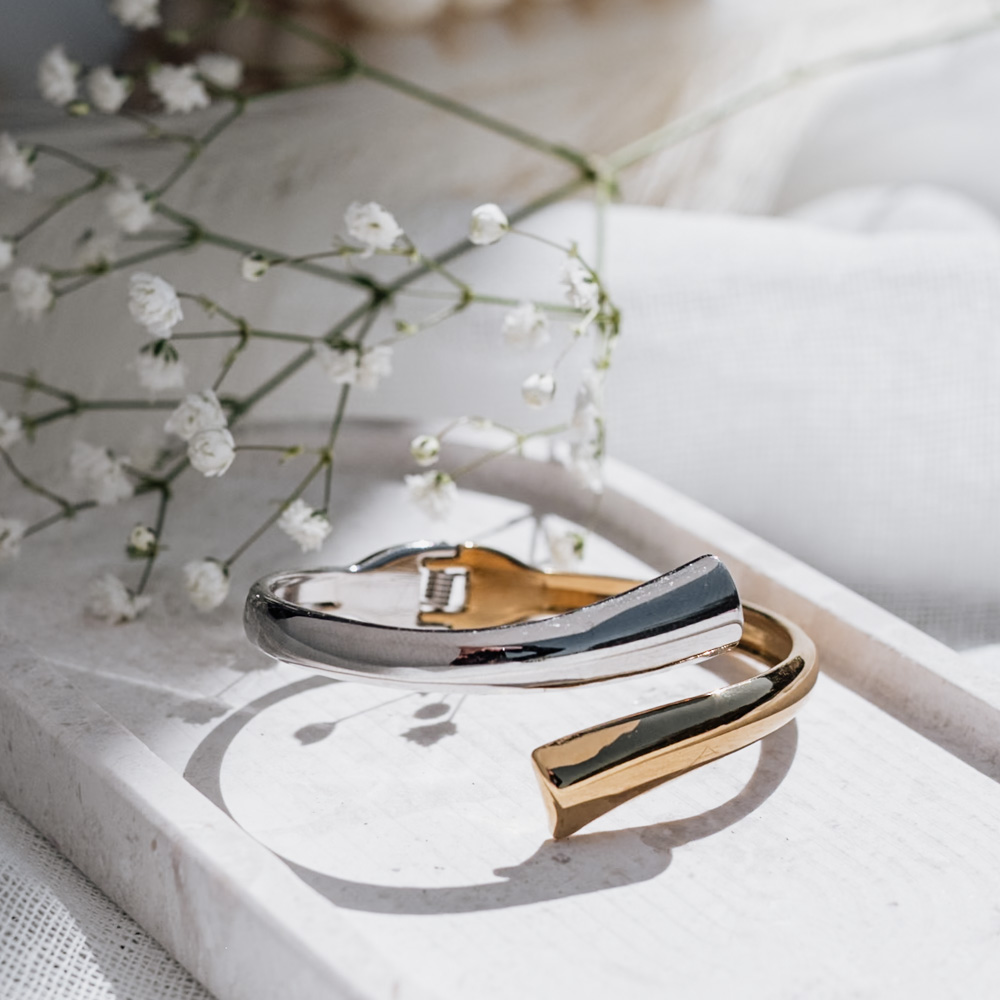 Χειροπέδα χρυσό/ασημί από ανοξείδωτο ατσάλι που δεν μαυρίζει και δεν ξεθωριάζει