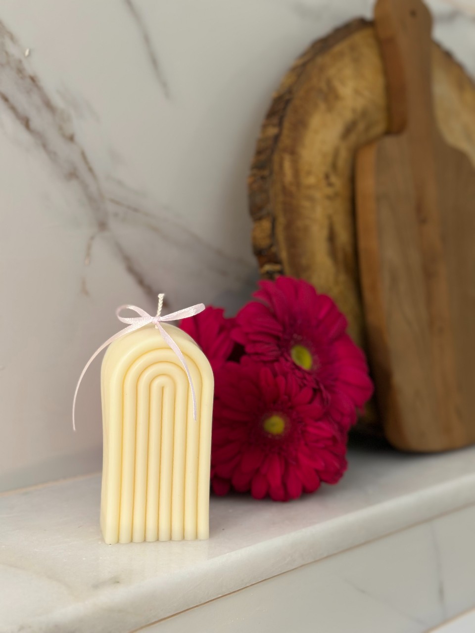 Χειροποίητο αρωματικό κερί σε ουράνιο τόξο με ξεχωριστό design ιδανικό για να ταιριάξει σε κάθε εποχική διακόσμηση, ύψος 9cm.